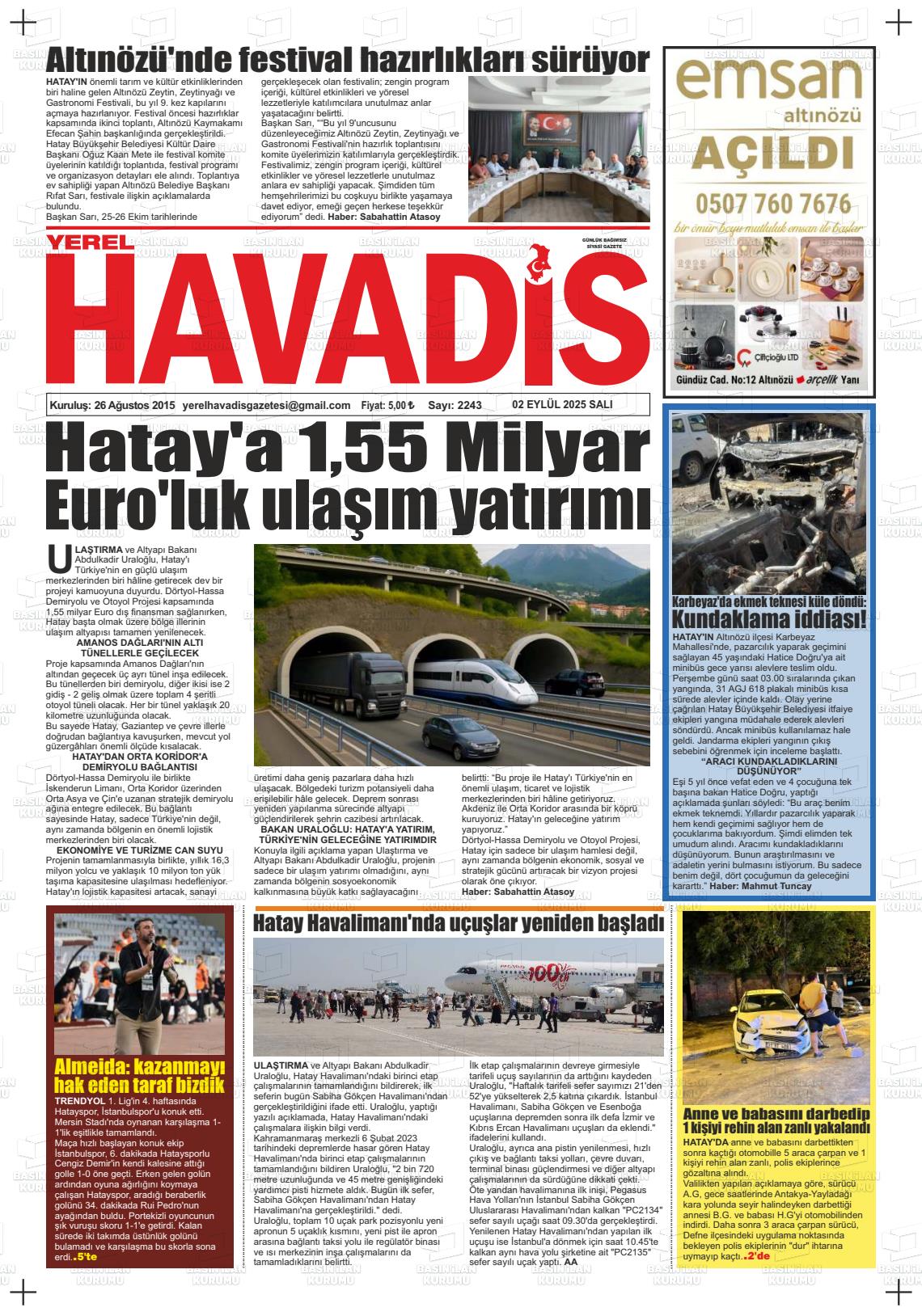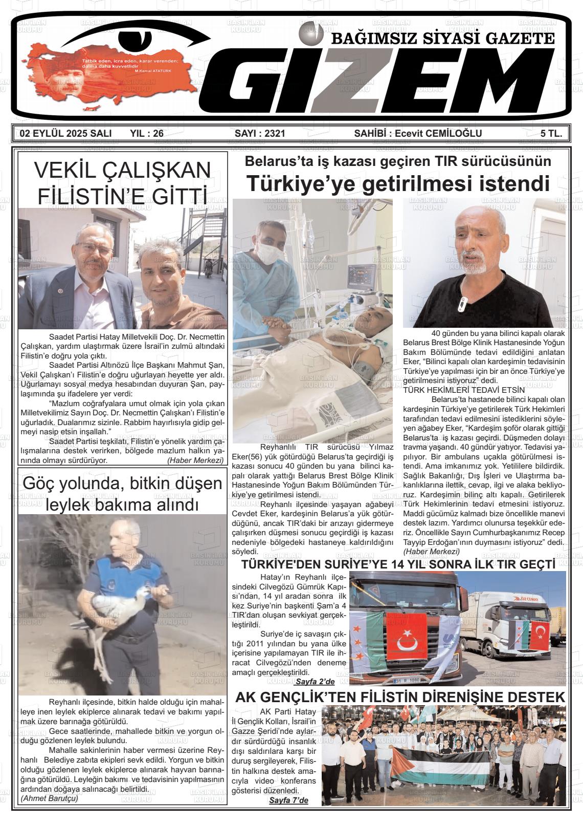 Hatay Yerel Gazeteleri 17 Şubat 2026, Salı Günü Manşeti
